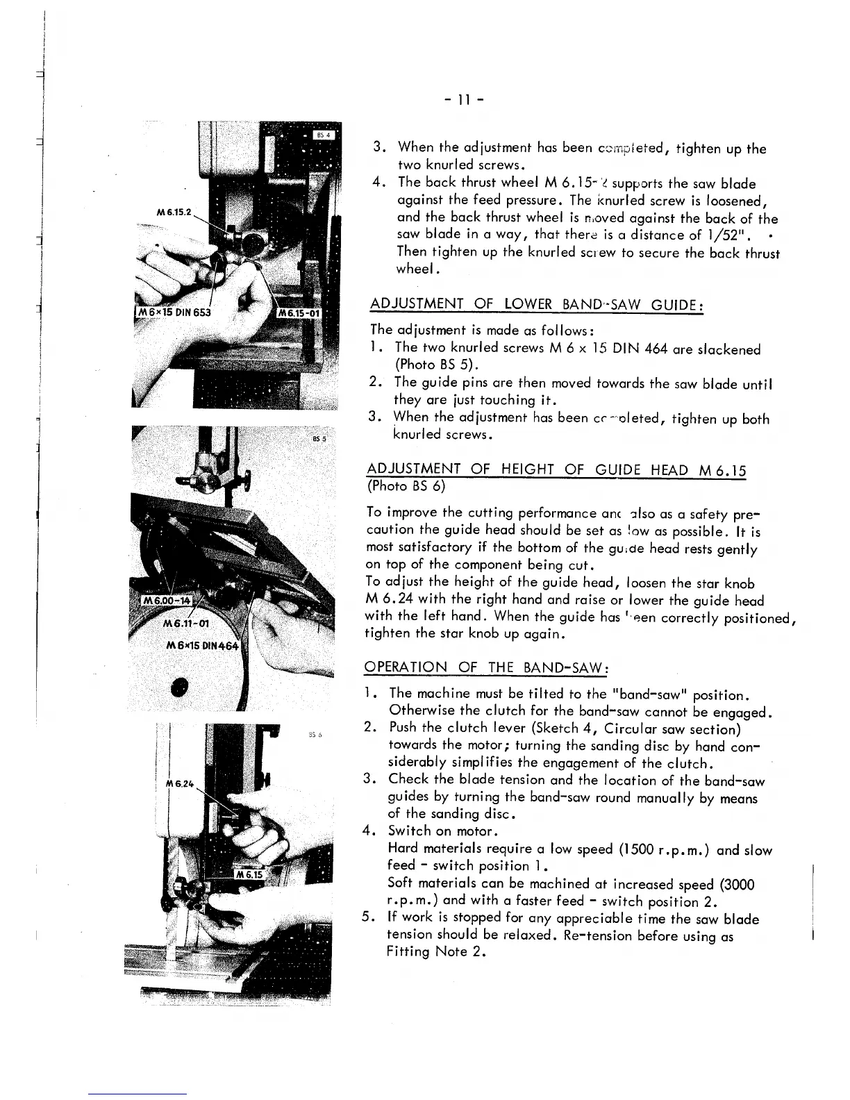 Emco rex - Adjustment of Lower Band-Saw Guide; Adjustment of Height of Guide Head; Operation of the Band-Saw