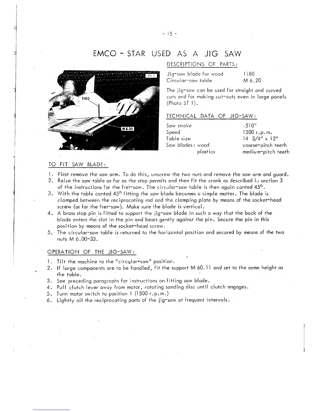 Emco rex - Operation of the Jug-Saw