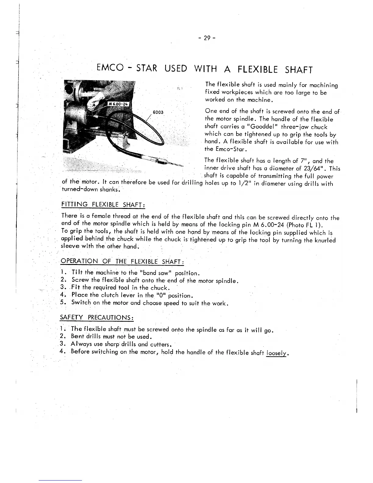 Emco rex - Fitting Flexible Shaft; Operation of the Flexible Shaft