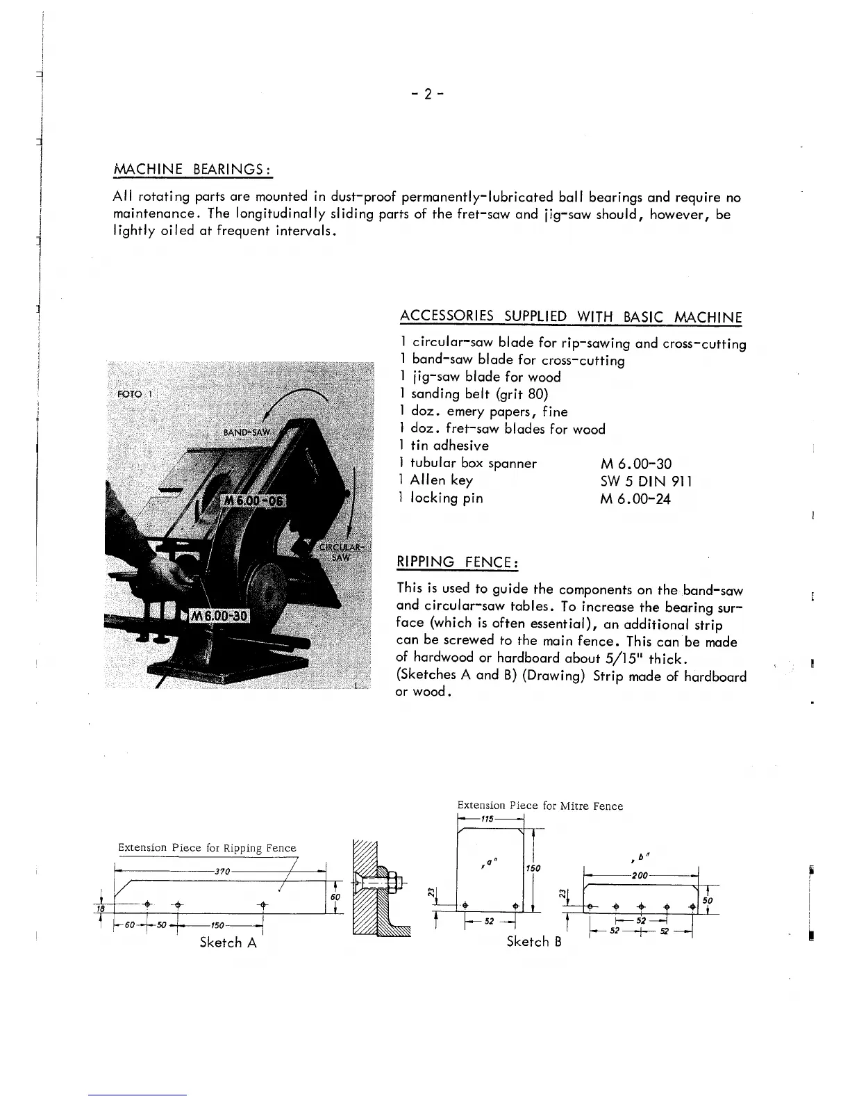 Emco rex - Machine Bearings; Accessories; Ripping Fence