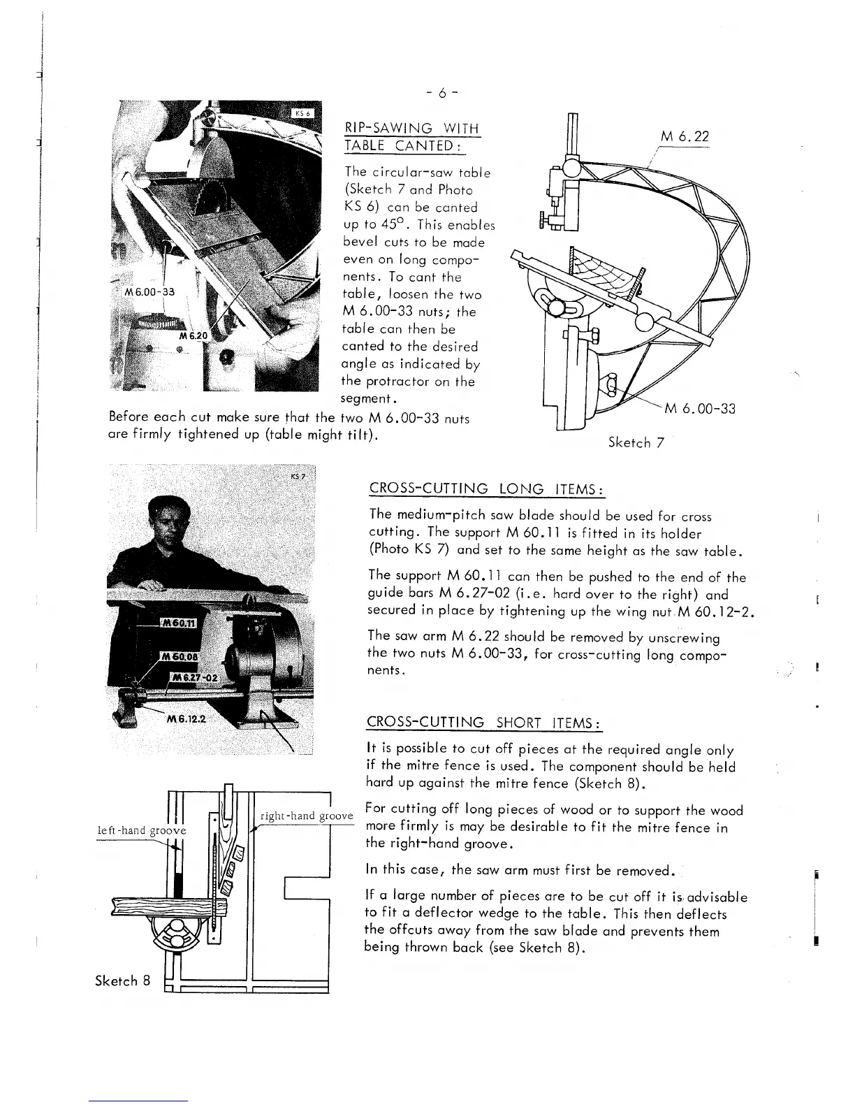 Emco rex - Rip-Sawing with Table Canted; Cross-Cutting Long Items; Cross-Cutting Short Items