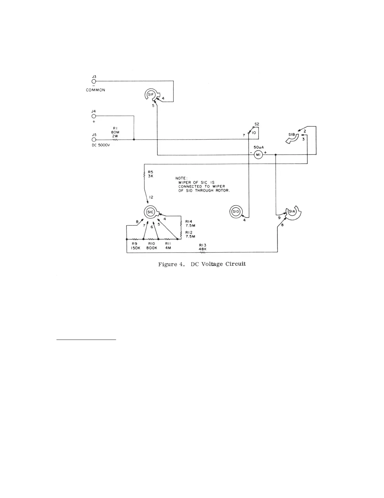 series resistance should be 1 Meg. If the series circuit is traced between J3 and J4 (with SI C on contact 6), it will be