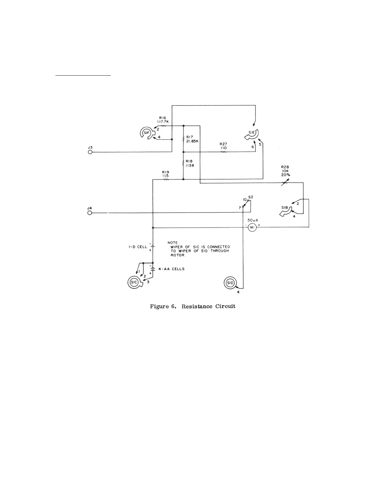 Figure 6 shows that portion of the V-20 meter circuit used for resistance measurements. With the unit used as an