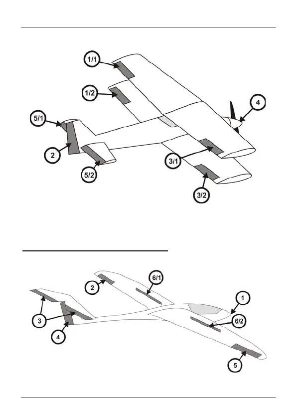 A biplane with 4 aileron servos, split elevator- and one yaw-rudder servo. The throttle servo