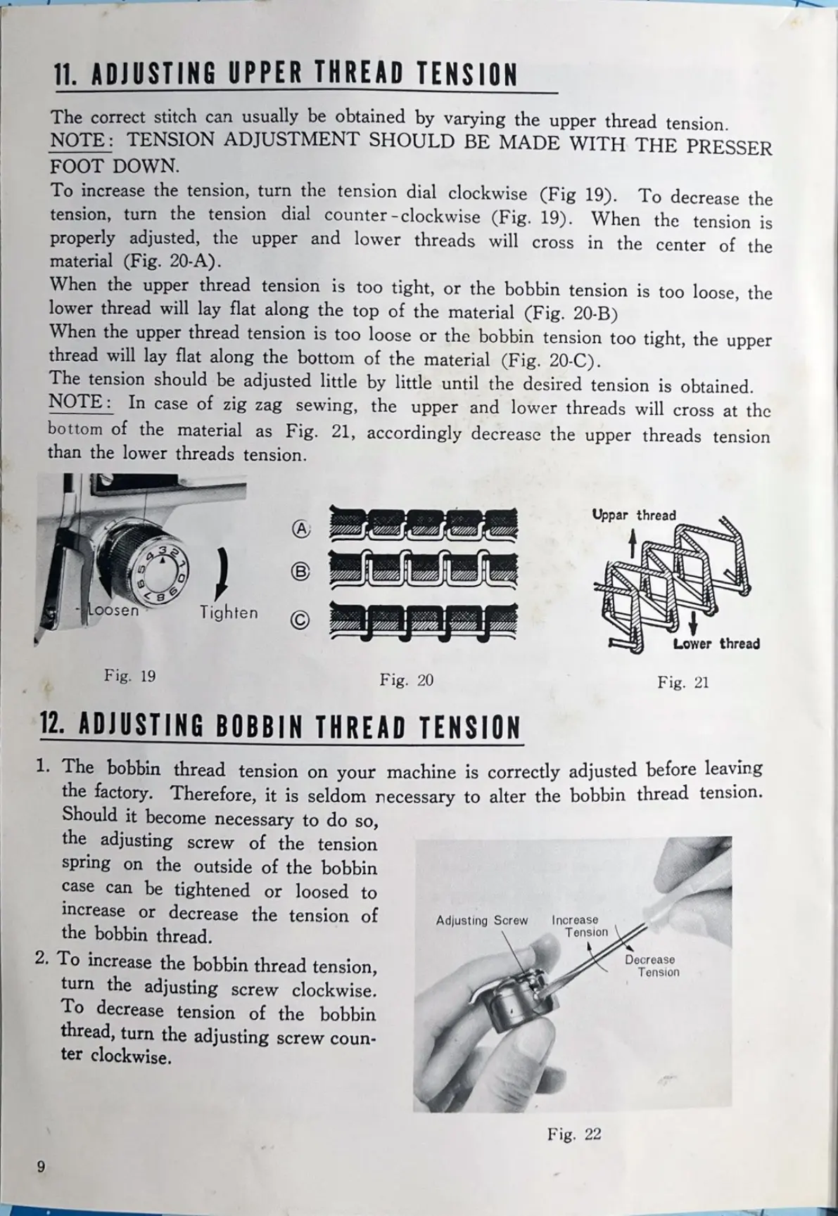 tension, turn the tension dial counter-clockwise (Fig. 19). When the tension is