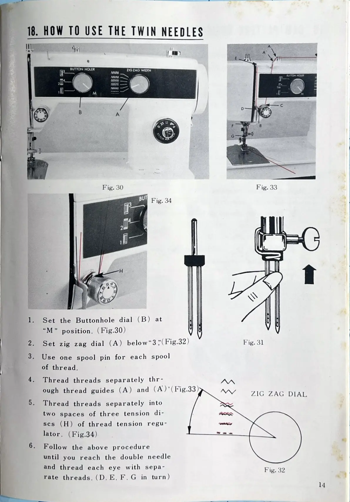 2. Set zig zag dial (A) below"3: (Fig.32)