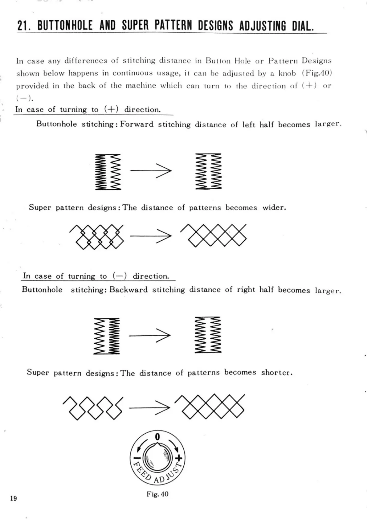 21. BUTTONHOLE AND SUPER PATTERN DESIGNS ADJUSTING DIAL.