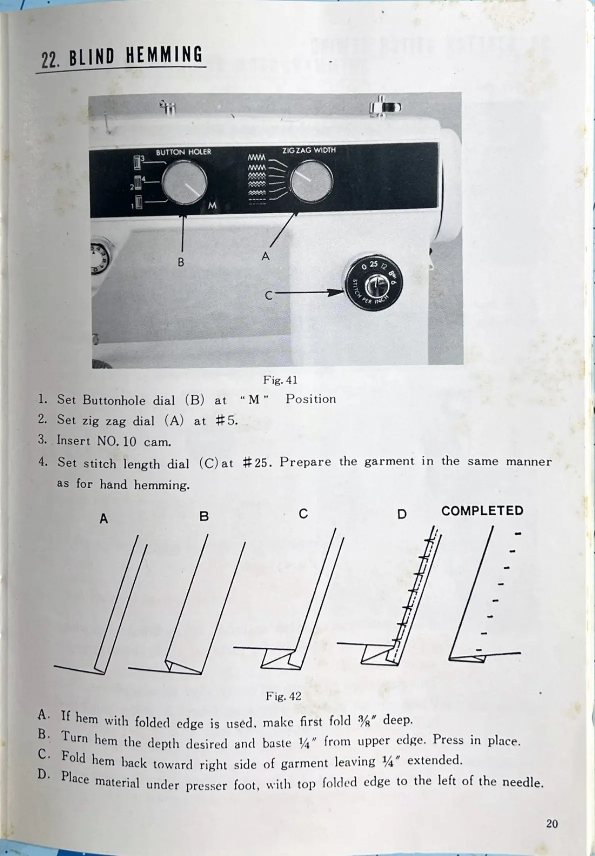 4. Set stitch length dial (C)at #25. Prepare the garment in the same manner