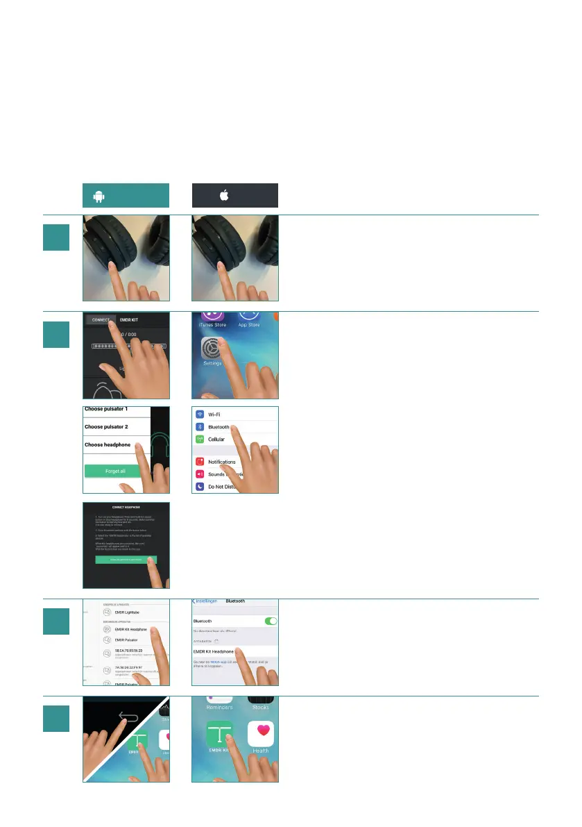 Hold the button on the Headphone for 1-2 seconds