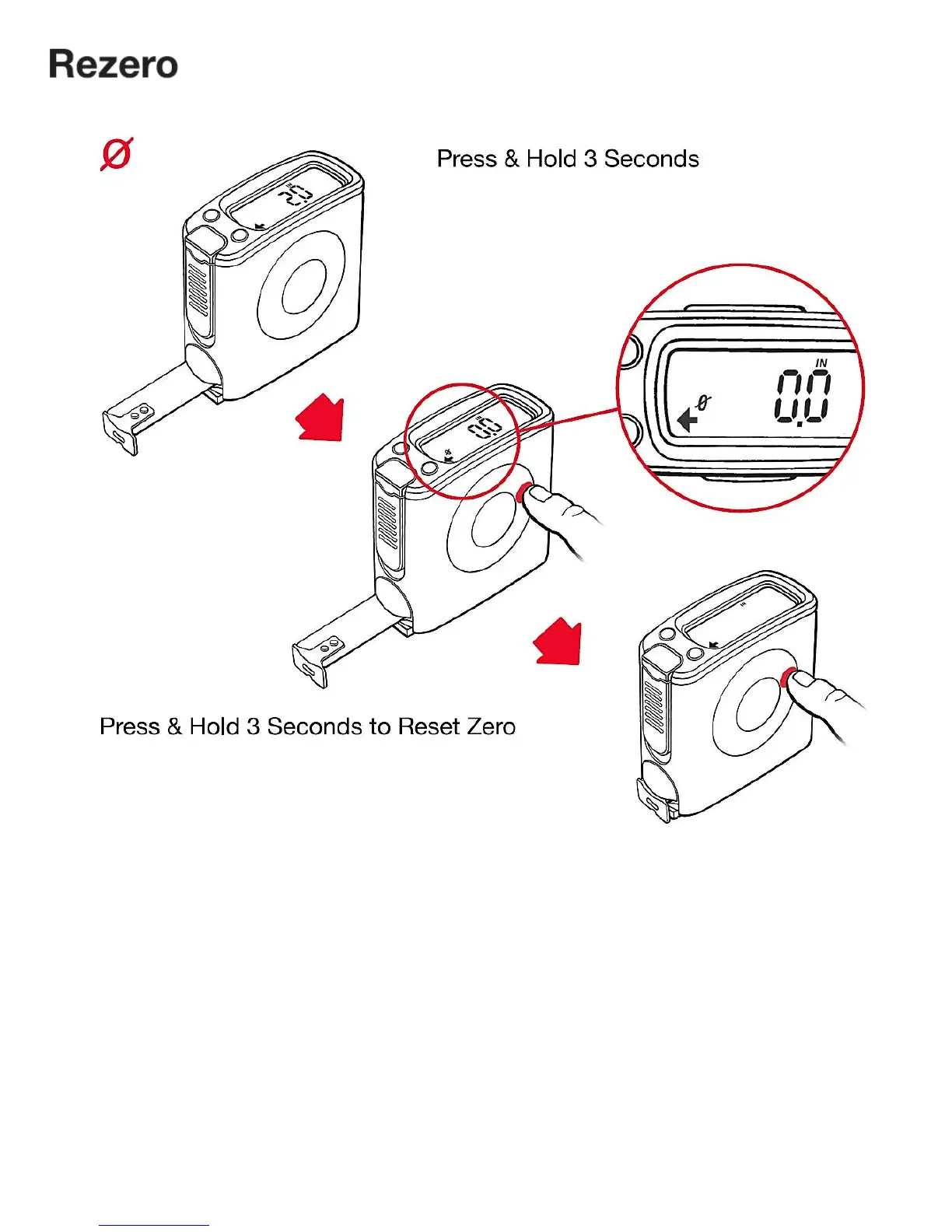eMeasure eTape16 - Rezero Function; Reset Zero Point