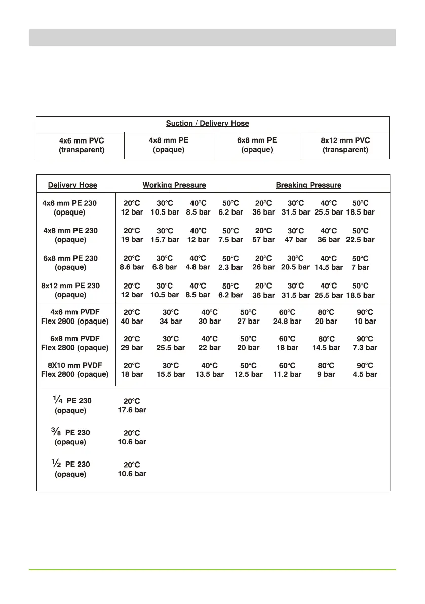 hoses according to pump’s capacity / model. Information reported here are intended for standard use only. For extended