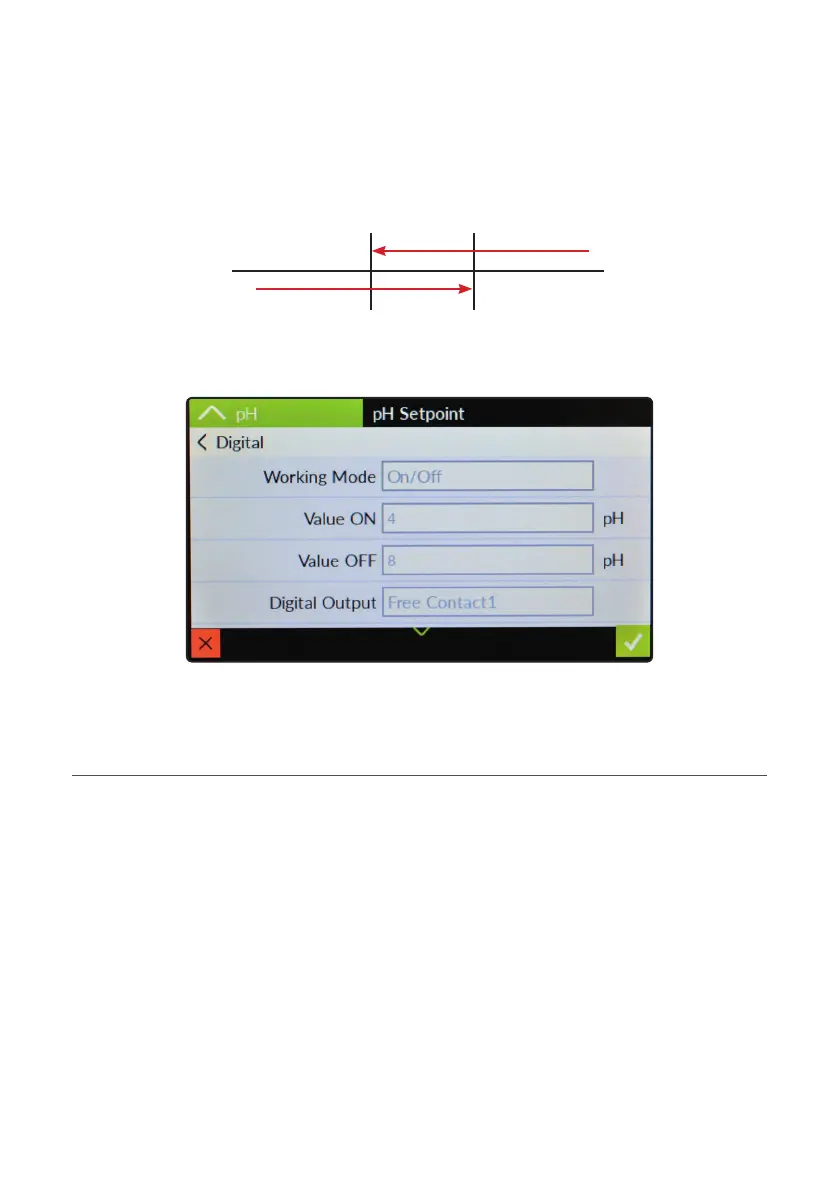 This mode is valid for any “Digital” output available. ON/OFF mode while dosing ACID