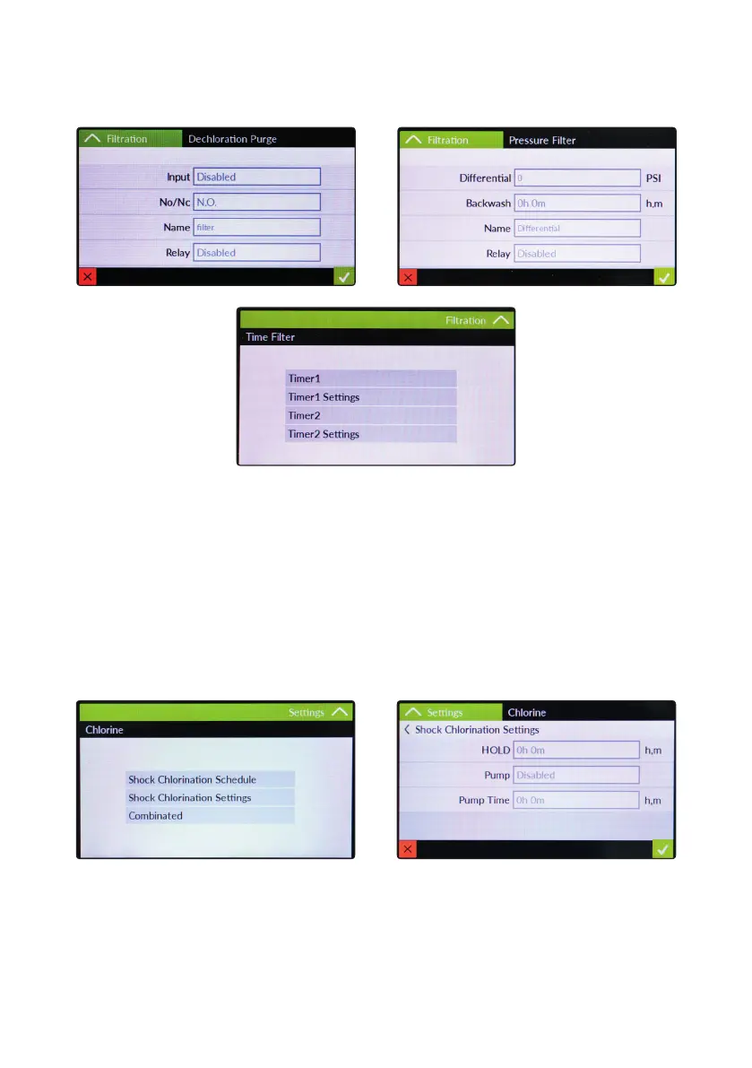 Through this menu (Settings, Filtration) it is possible to congure the dechlorination pump from pool’s lters.