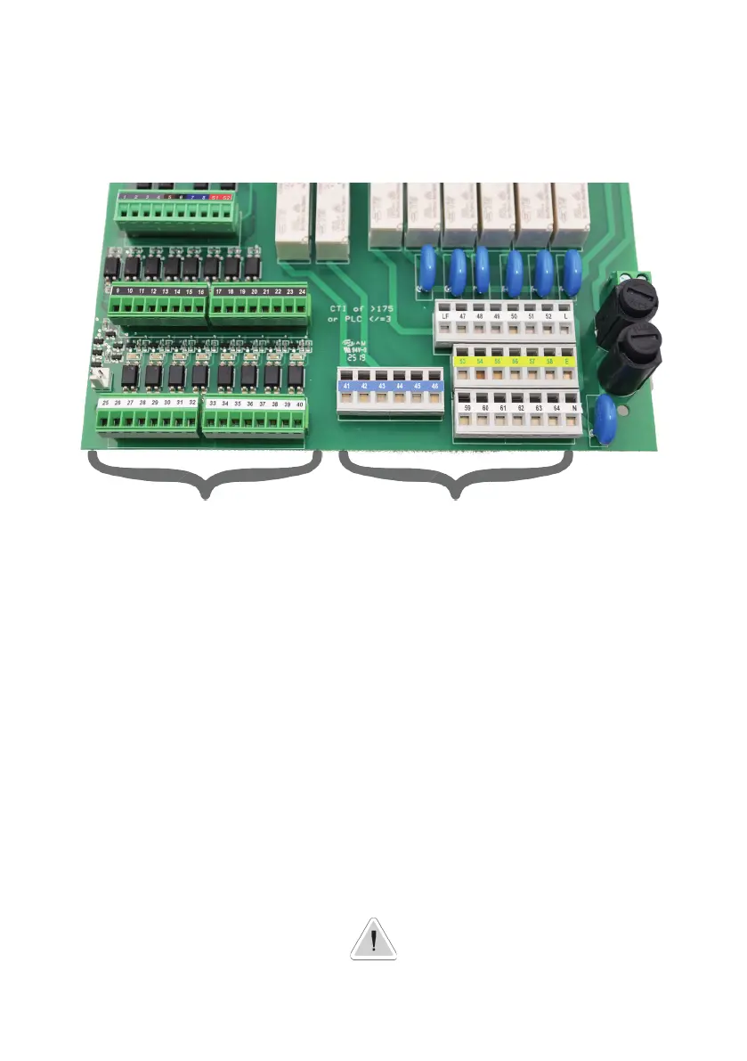 For easy understanding the board has been divided into two parts: I/O connections and Power - Relays connections.