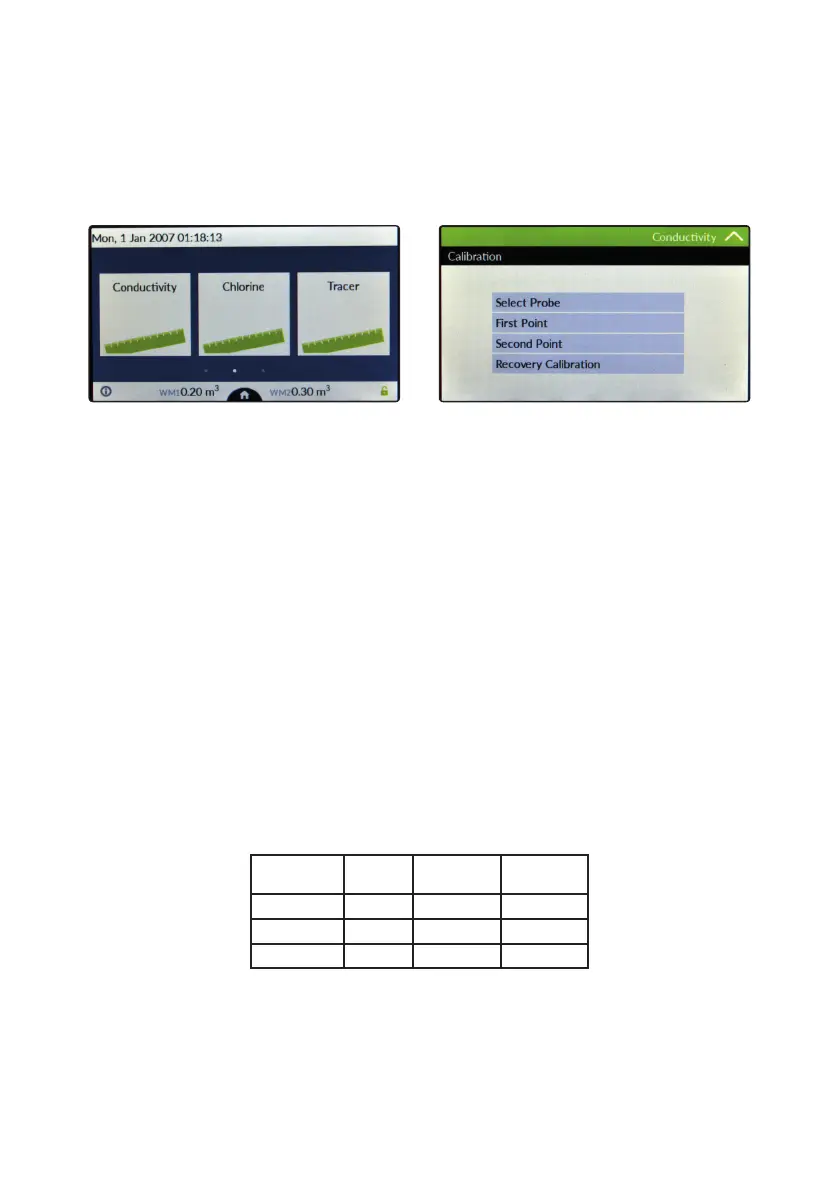 compensation. Conductivity calibration procedure involves a zero calibration (First Point) and a 2nd calibration point (Second