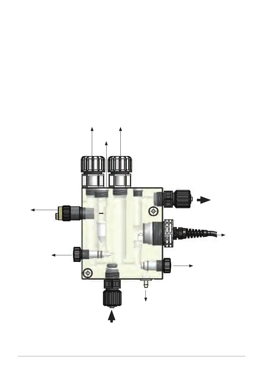 The flow of water within this cell must remain constant and within 40 l/h. A pressure stabilizer is