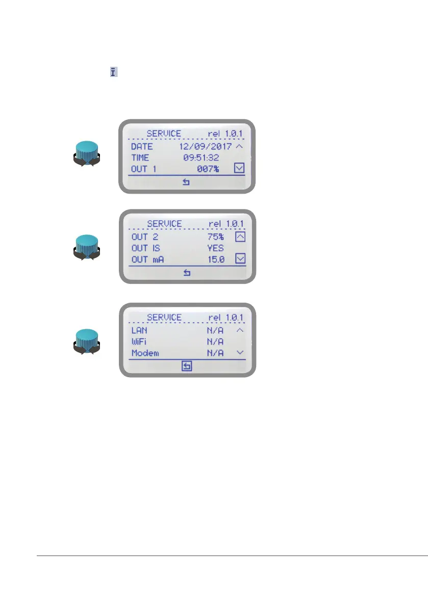 From main screen select to review main controller parameters and current outputs status.