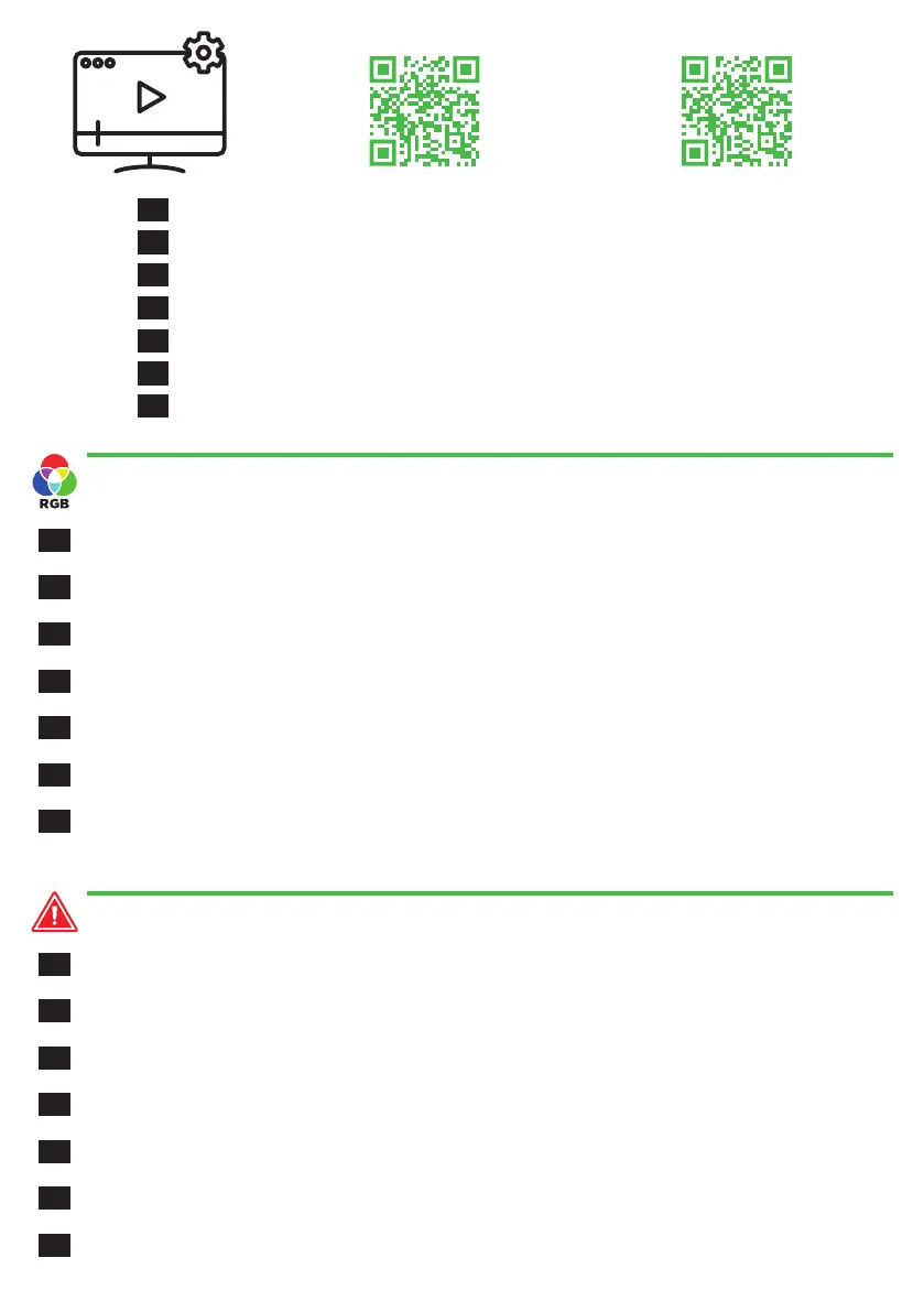 Por favor, note sobre a exibição de cor de fundo (somente versão RGB): VERDE: modo de trabalho normal | BRANCO: Espera | VERMELHO: