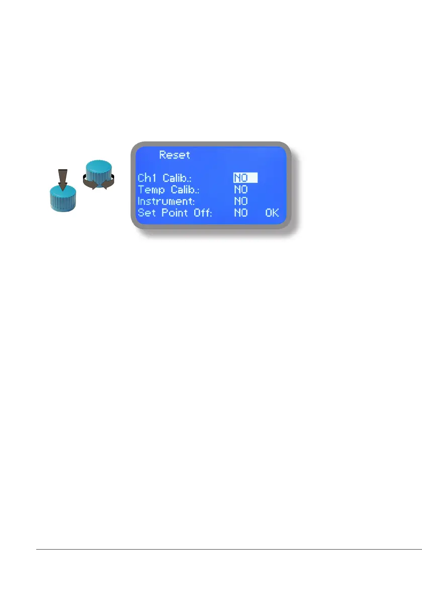“Instrument Reset” menu allows user to reset several parameters (channel, temperature, instrument and setpoint)