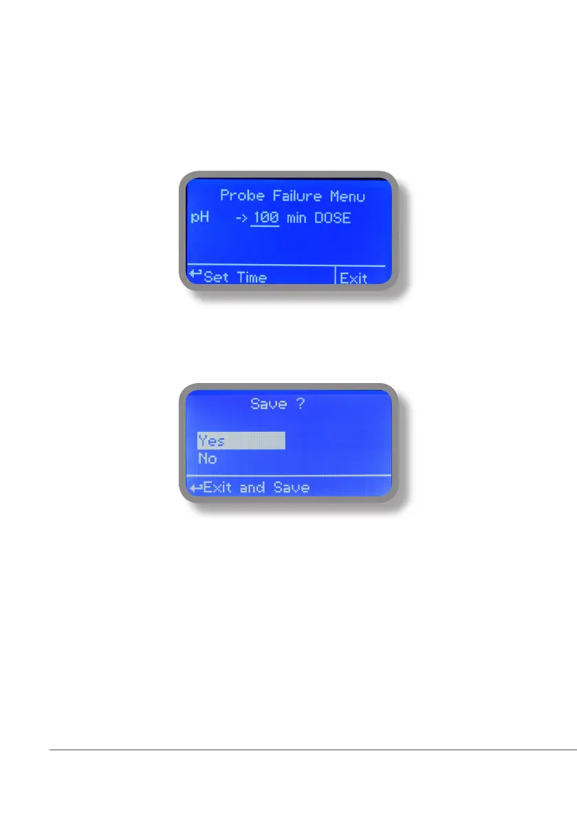 possible to STOP pumps or just to show an alarm message (DOSE, probe failure) . Function can be disabled selec-