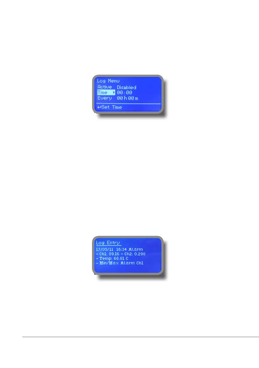 selected frequency period (every) at requested time (time). SET DATE & TIME BEFORE TO ENABLE LOG. IF NOT