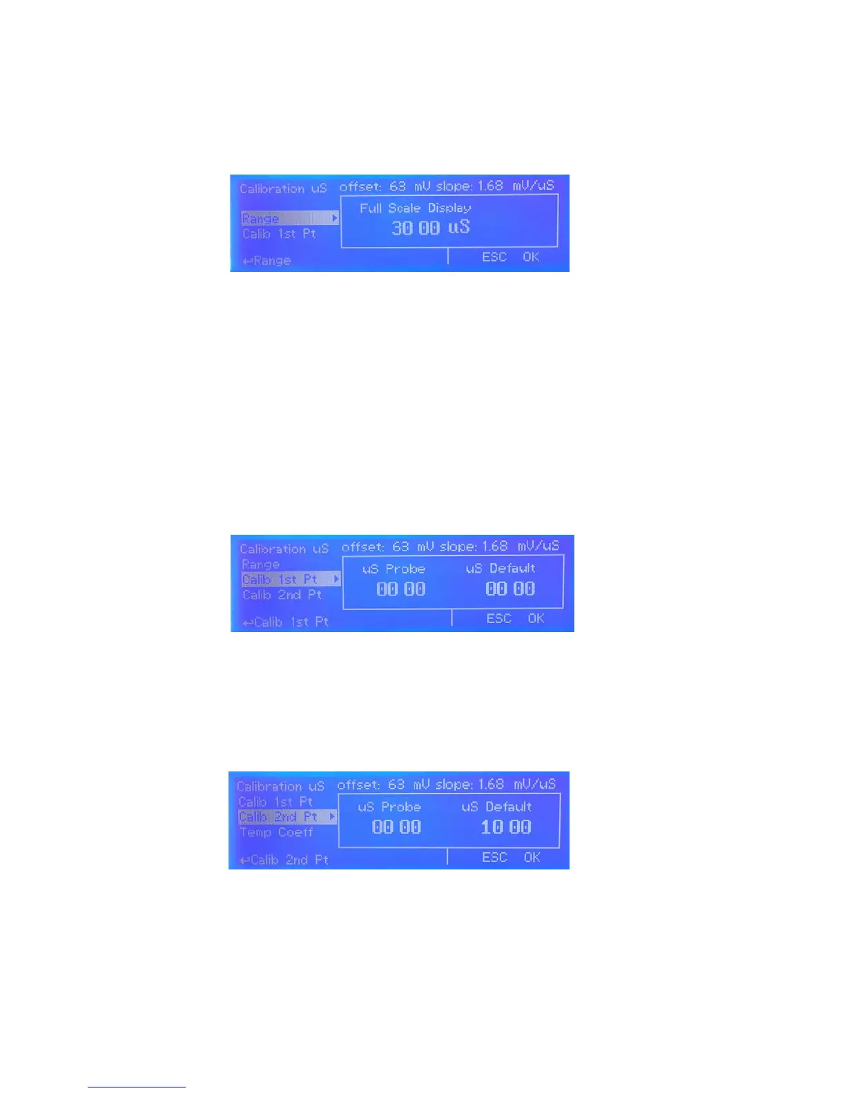 plant. Once into “Calibration uS” menu move wheel on “Calib 1st Pt” then press wheel, move cursor on “OK” and press