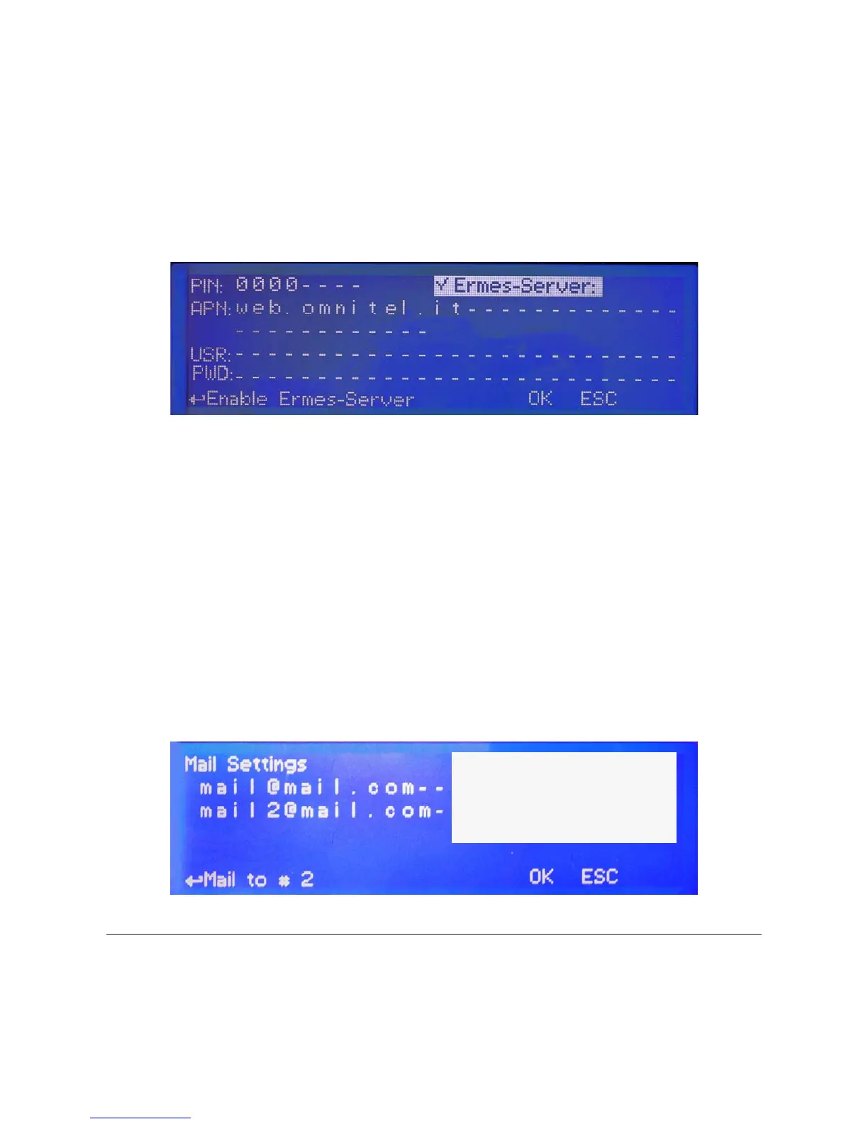 SIM PIN CODE (4 DIGITS): enter pin code if “error pin” message appears on main screen. PIN can’t be edited.