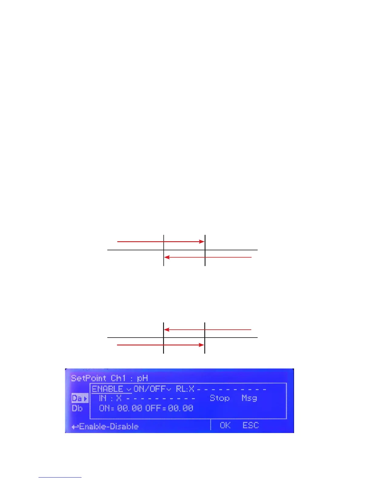 Instrument will leave related output active until reading value will increase up to 7.00pH.
