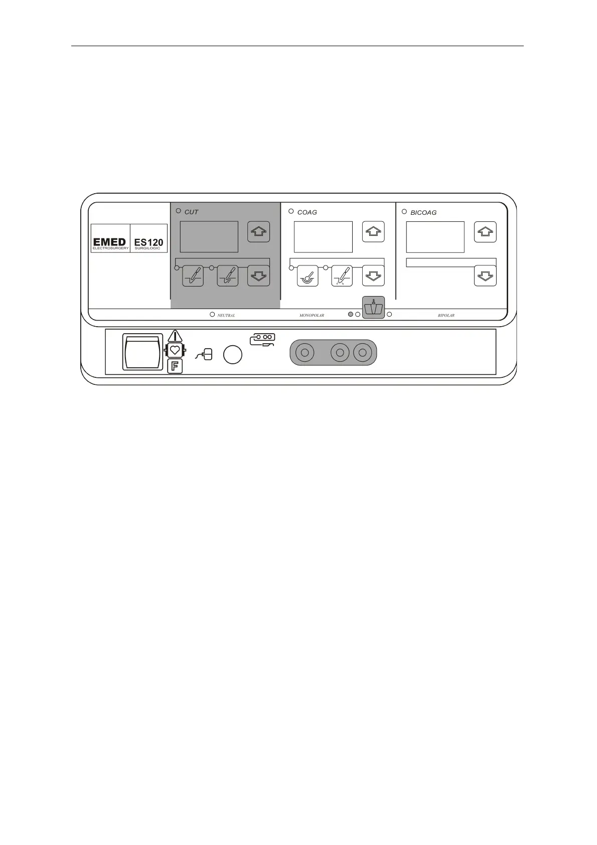Cutting power displays and push-buttons for cutting types and power regulation.