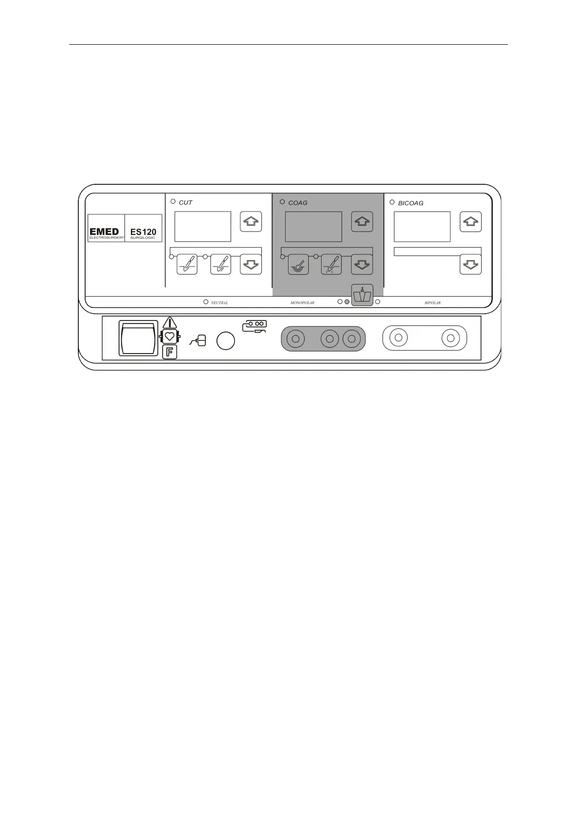 Coagulation power display and push-buttons for coagulation types and power