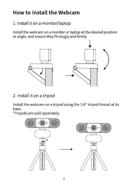 Install the webcam on a tripod using the 1/4" tripod thread at its