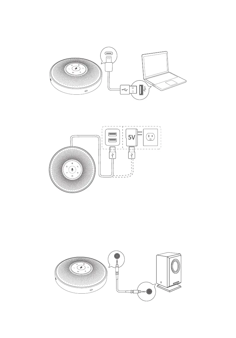 Connect the speaker to the AUX OUT port of eMeet OceCore M2 Lite product with