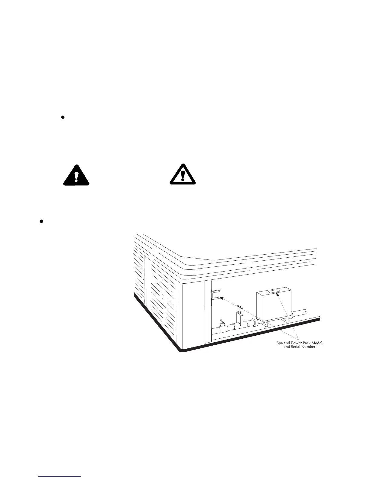 Refer to the illustration below to locate and record the model number and serial number of both your Spa and