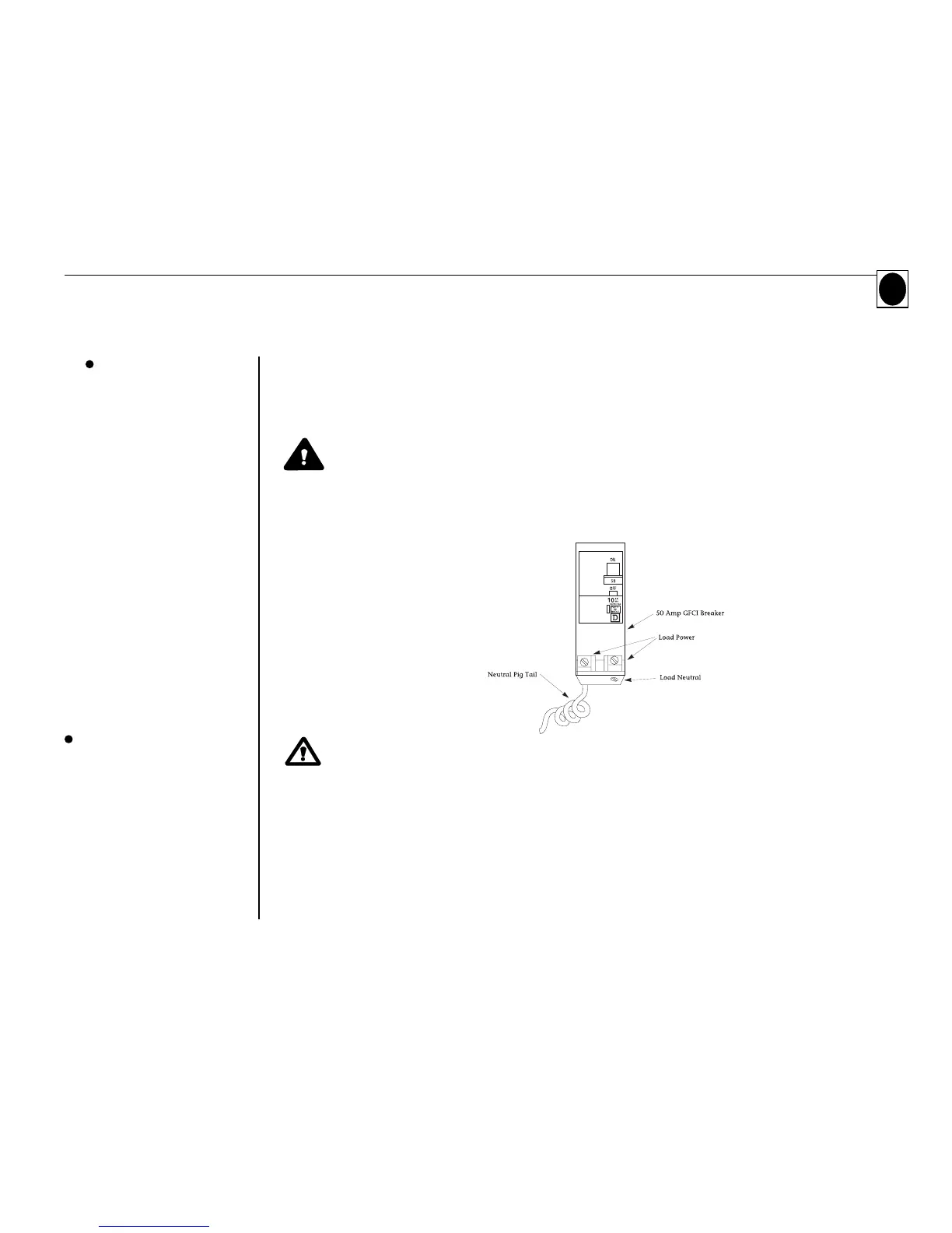 If the GFCI fails to operate in this manner, there is a risk of electric shock! Shut off the main power source.