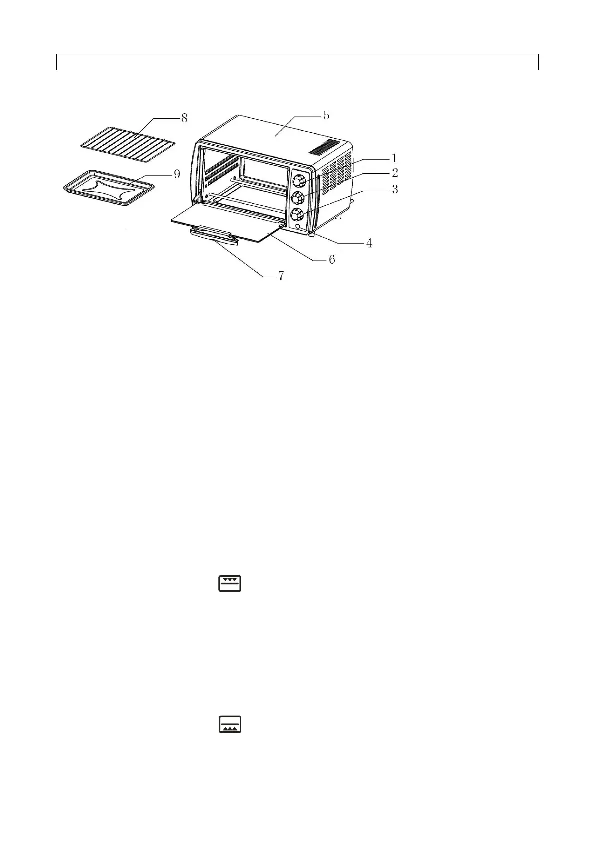 Note: when the appliance is operating, only lower heating elements work, suitable for baking cakes, pies,
