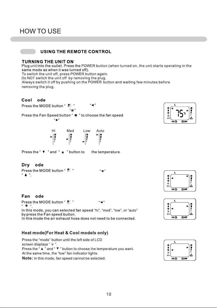 Note: In this mode, fan speed cannot be adjusted.