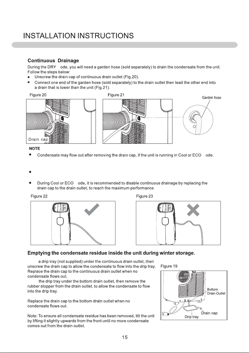 on a downward angle and the drainage location is lower than the drain outlet. (Fig. 22, 23)