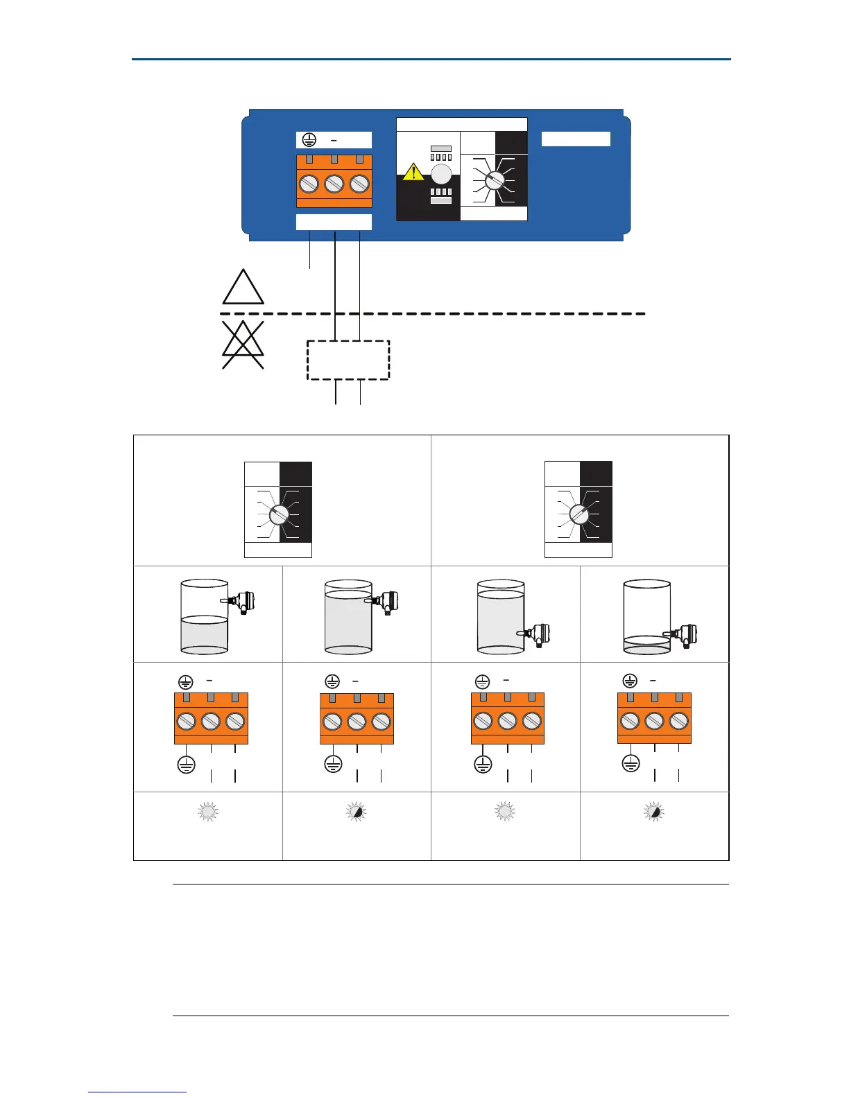 High level, dry = on Low level, wet = on