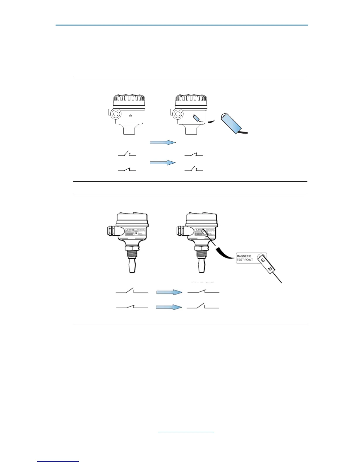 the level switch. By touching a magnet on the target, the output will change state