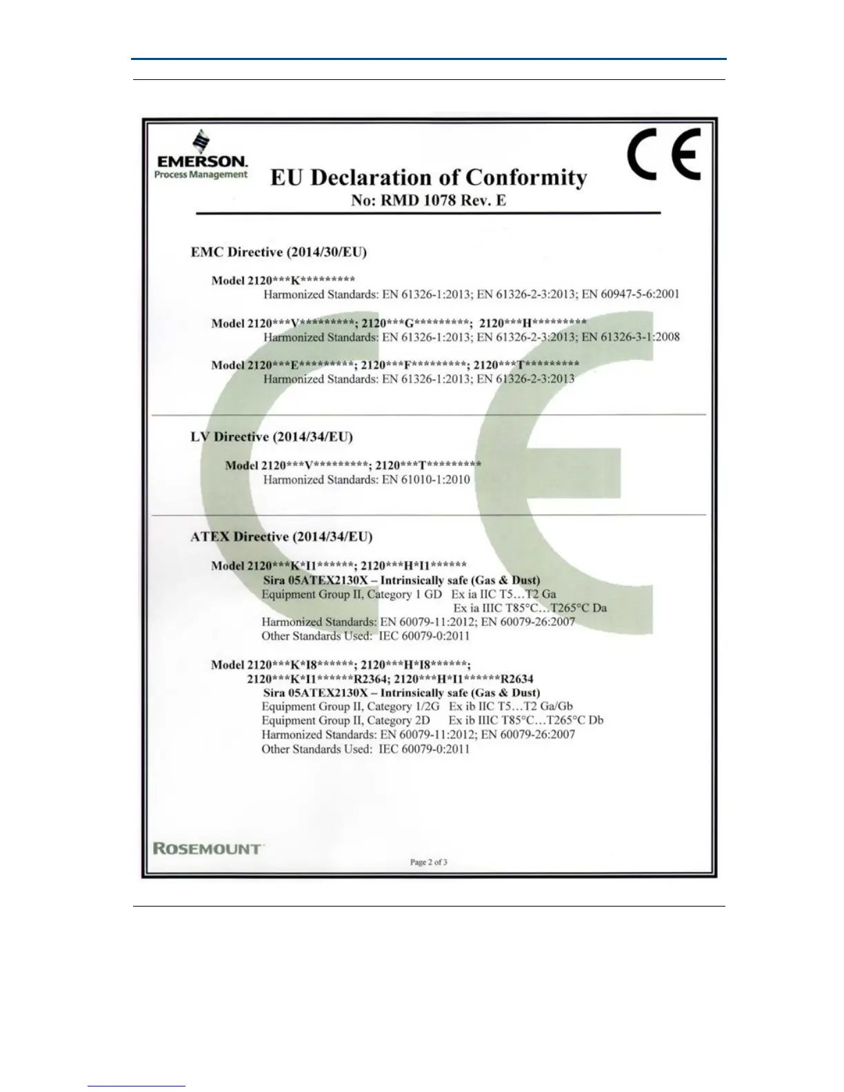 Figure 10. EC Declaration of Conformity for Rosemount 2120 (Page 2)