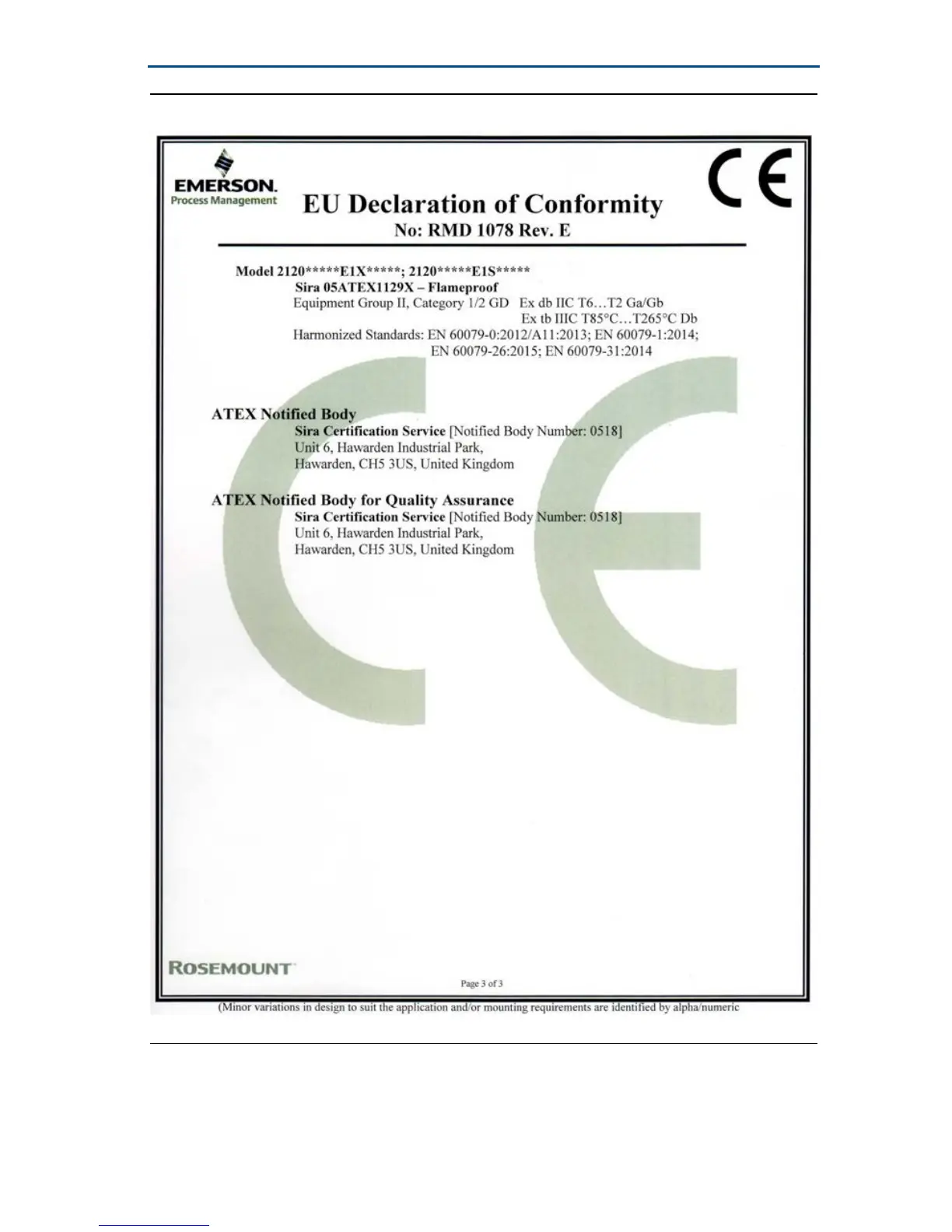 Figure 11. EC Declaration of Conformity for Rosemount 2120 (Page 3)