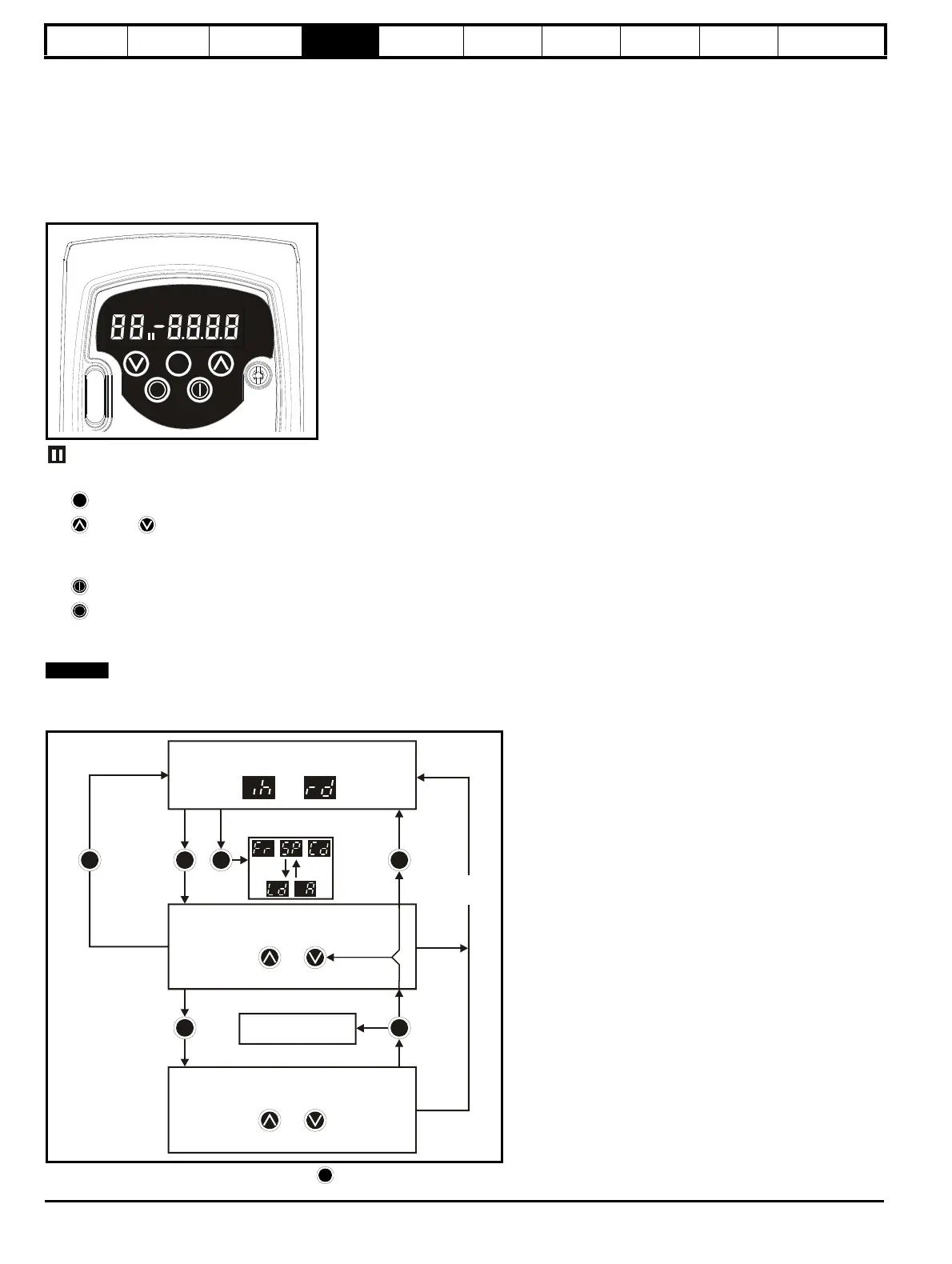 The UP and DOWN keys are used to select parameters and edit their values. In keypad mode, they are used to increase and decrease the