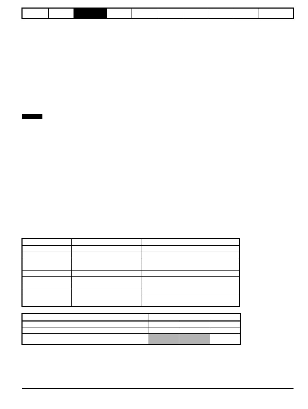 Some parameters (Pr 6.04, Pr 11.27, Pr 11.42, Pr 11.43 and Pr 12.41) are updated on exit from mode or on a drive reset. Serial access to these