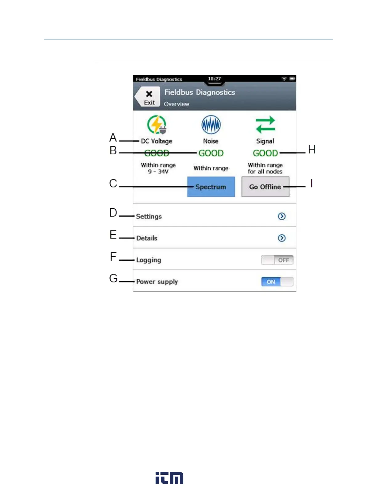 Figure 5-2: Fieldbus Diagnostics Overview screen while taking measurements