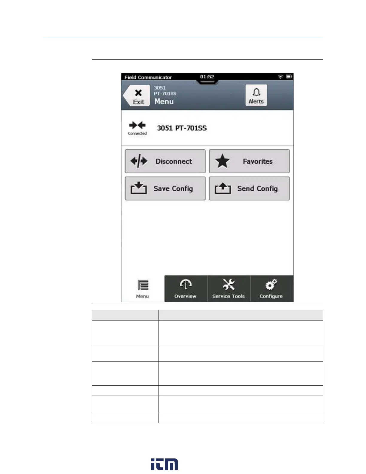 Figure 3-6: Menu screen for a connected HART device