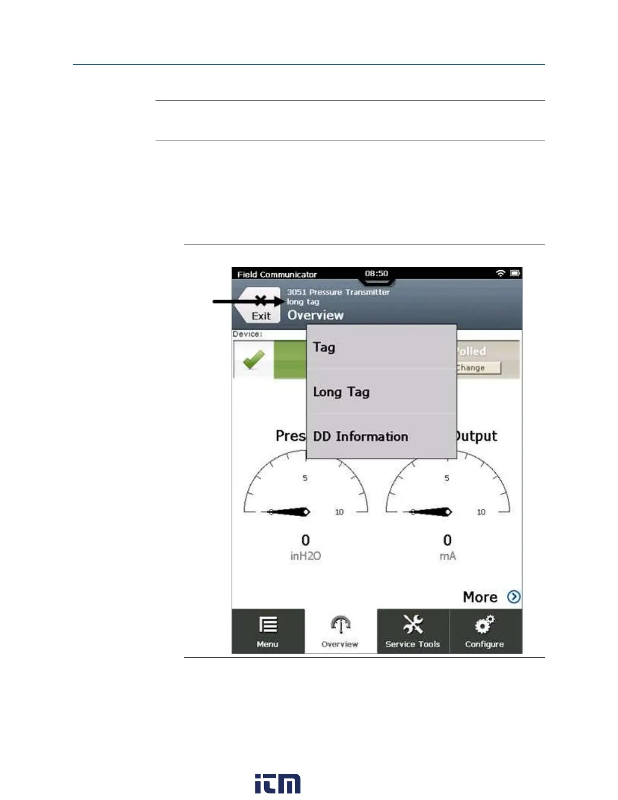 If you want to change the value of the HART tag, see the device documentation for more