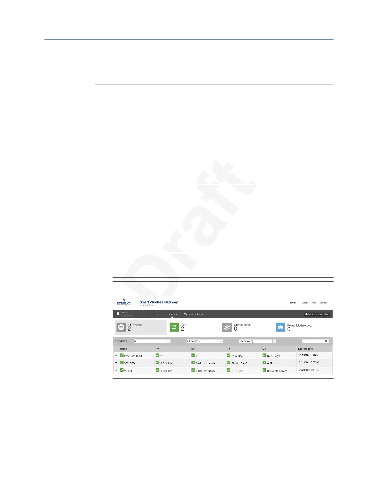 Figure 4-1: Emerson Wireless Gateway Devices page