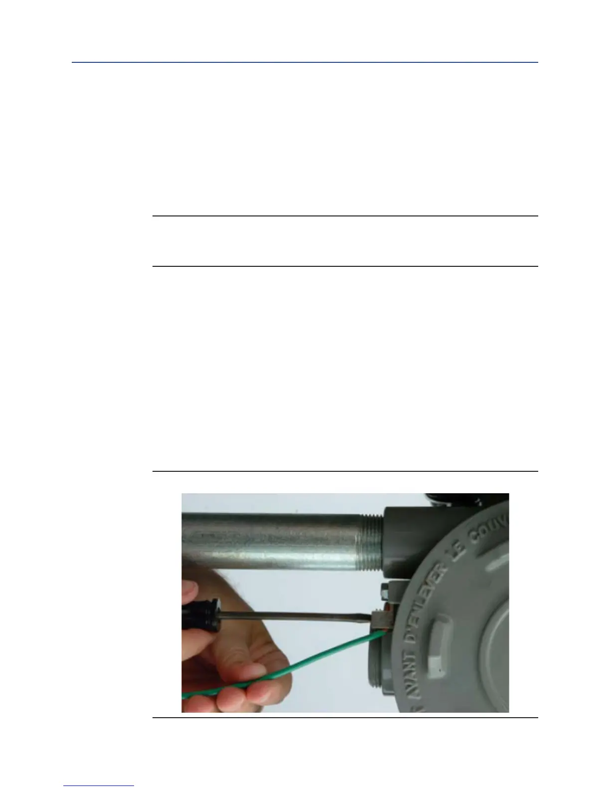 3.6.2 Connect 14 AWG or larger earth/ground wire, tighten setscrew.