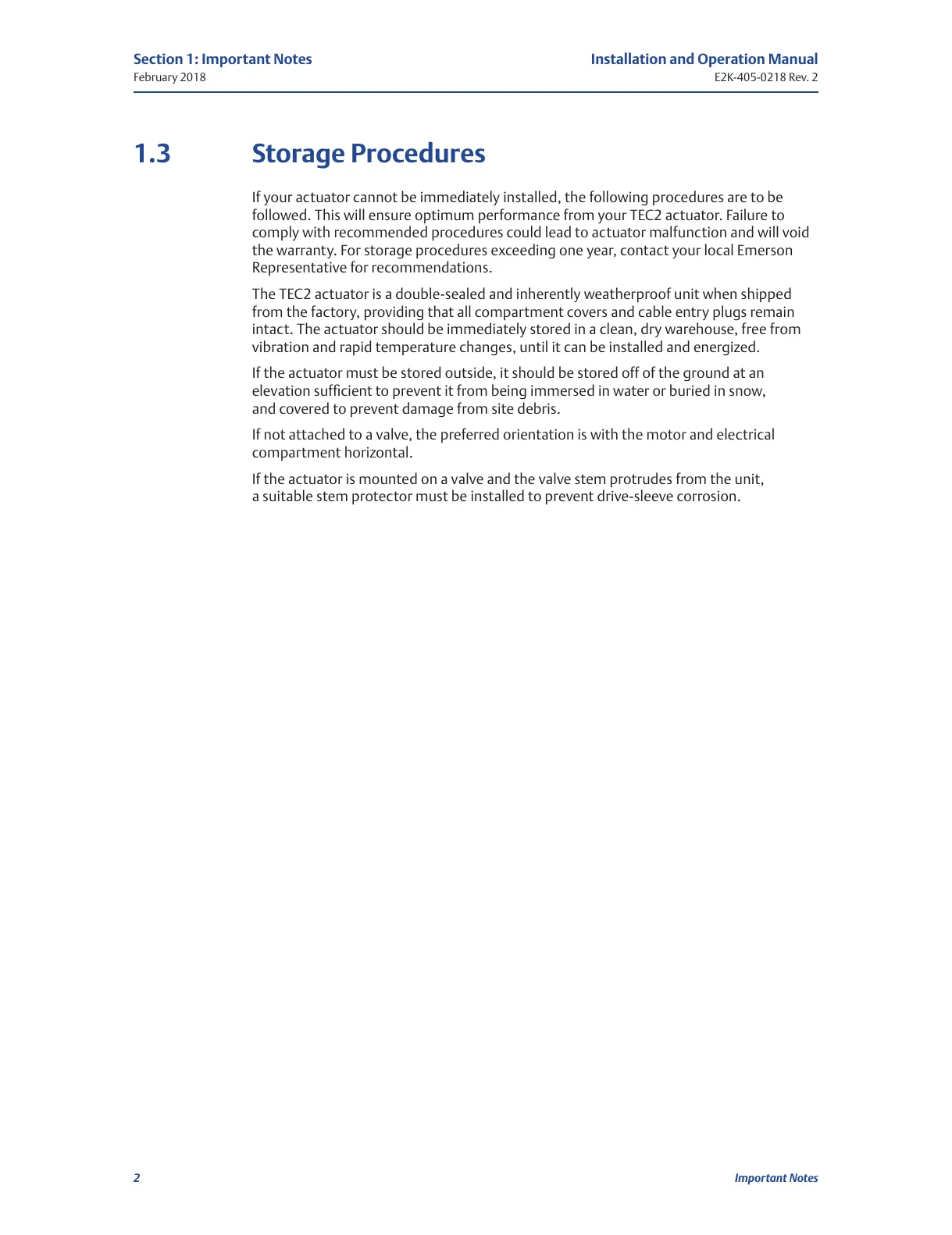 the warranty. For storage procedures exceeding one year, contact your local Emerson