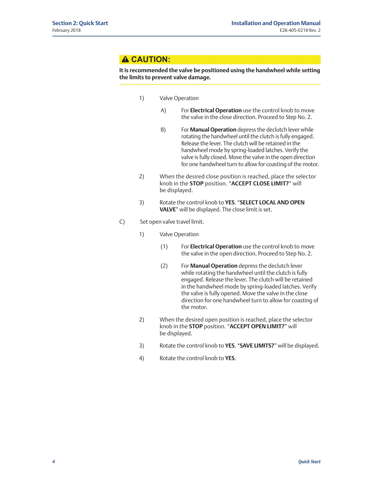 knob in the STOP position. “ACCEPT OPEN LIMIT?” will